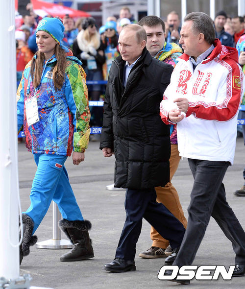 2014소치 동계올림픽 개막을 앞둔 5일(한국시간) 푸틴 러시아 대통령과 이신바예바가 러시아 소치 올림픽 빌리지에 열린 입촌식에 참석했다.