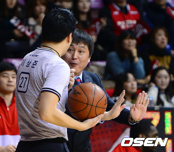 3쿼터 KGC 이상범 감독이 심판에게 항의하고 있다.