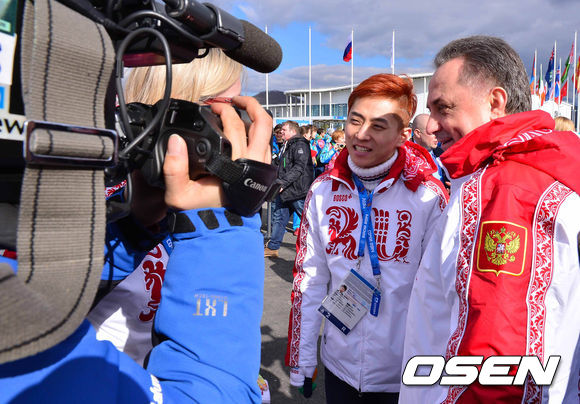 2014소치 동계올림픽 개막을 앞둔 5일(한국시간) 안현수가 러시아 소치 올림픽 빌리지에 열린 입촌식에 참석해 인터뷰를 하고 있다.