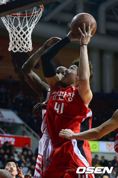 3쿼터 KGC 오세근이 골밑슛을 시도하고 있다.
