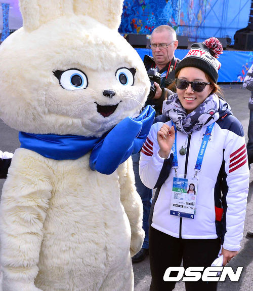 2014소치 동계올림픽 개막을 앞둔 5일(한국시간) 대한민국 선수단이 러시아 소치 올림픽 빌리지에서 열린 입촌식에 참석했다. 이상화가 기념촬영을 하고 있다.