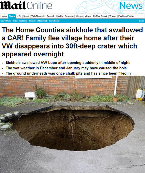 지난 2일(현지시간) 영국의 한 매체는 '집 앞 10m 싱크홀'에 관한 사건을 보도, 단숨에 전세계의 이목을 집중시켰다.