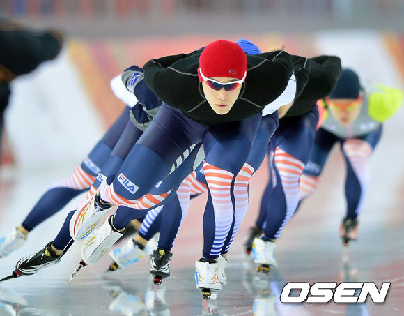 스피드스케이팅 대표팀이 6일(한국시간) 러시아 소치 아들레르 아레나 경기장에서 모태범이 훈련을 하고 있다.
