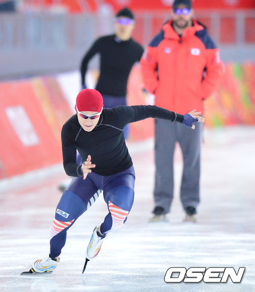 스피드스케이팅 대표팀이 6일(한국시간) 러시아 소치 아들레르 아레나 경기장에서 모태범이 훈련을 하고 있다.