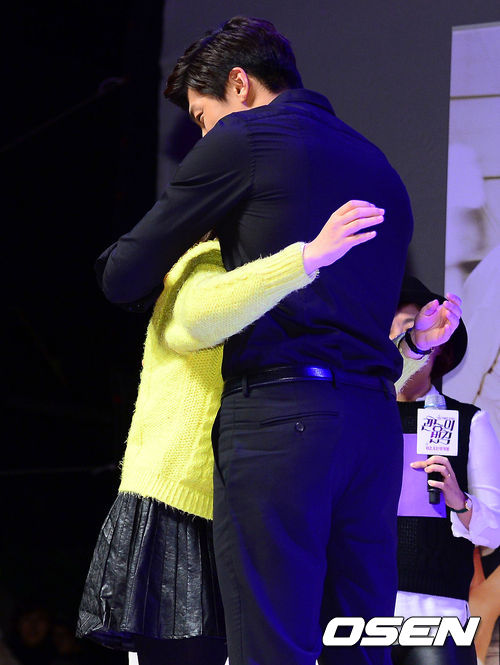 이재윤이 남자공포증있는 팬에게 포옹을 해주고 있다.