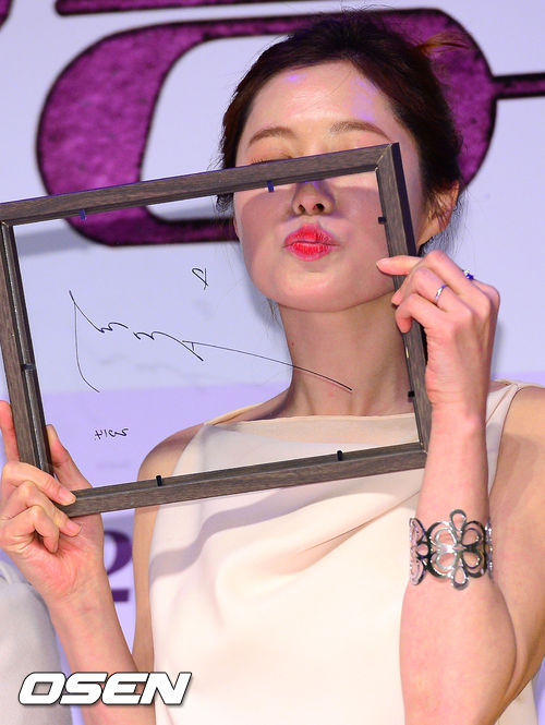 문소리가 사인판에 입술자욱을 남기고 있다.