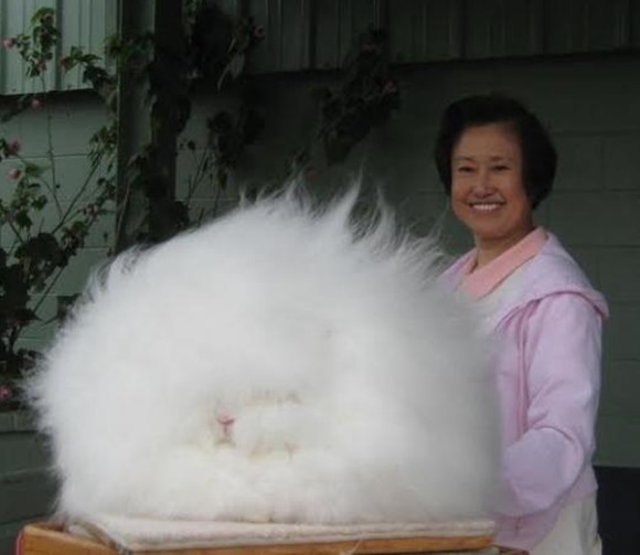 미국 언론 ‘허핑턴 포스트’는 3일(이하 한국시간) 미국 산호세주립대 명예교수인 베티 추가 기르고 있는 거대 털 뭉치 토끼의 사진을 공개했다.