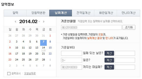 배란일 계산기와 만나이계산 등 복잡하고 귀찮은 여러 가지 날짜를 대신 세주는 도구들이 많이 있다.