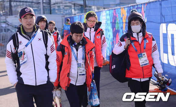 2014소치 동계올림픽 개막일인 7일(한국시간) 대한민국 쇼트트랙 대표팀이 러시아 소치 스케이팅 트레이닝 센터에 훈련을 위해 들어서고 있다.