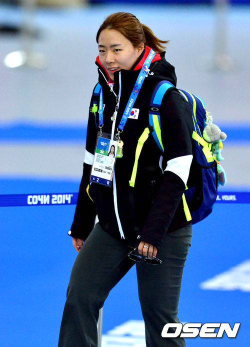 2014소치 동계올림픽 개막일인 7일 오후(한국시간) 러시아 소치 아들레르 아레나 경기장에서 대한민국 스피드 스케이팅 이상화가 미소를 지으며 훈련 준비를 하고 있다.