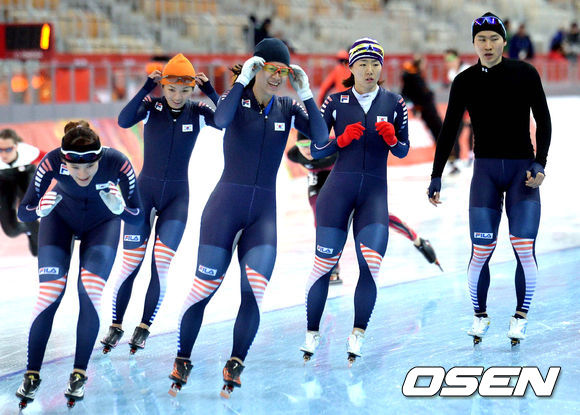 2014소치 동계올림픽 개막일인 7일 오후(한국시간) 러시아 소치 아들레르 아레나 경기장에서 대한민국 스피드 스케이팅 선수들이 훈련을 하고 있다.
