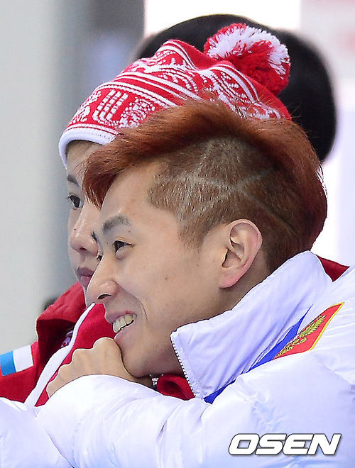 러시아 대표팀 안현수가 여자친구 우나리씨와 한국 대표팀 훈련을 지켜보고 있다.