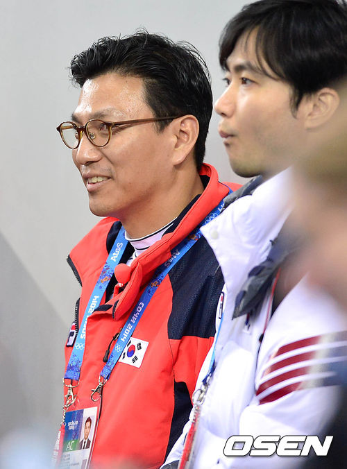 김재열 선수단장이 한국 쇼트트랙대표팀의 훈련을 바라보고 있다.