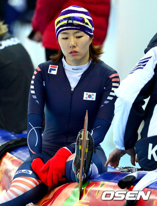 2014소치 동계올림픽 개막일인 7일 오후(한국시간) 러시아 소치 아들레르 아레나 경기장에서 대한민국 스피드 스케이팅 이상화가 스케이트 날 상태를 점검하고 있다.
