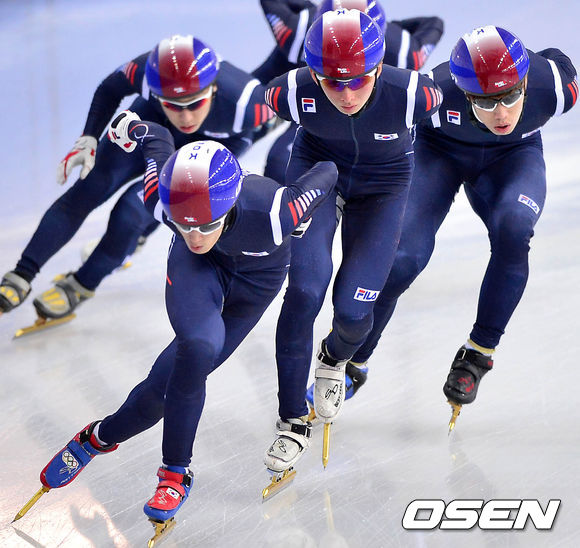 한국 쇼트트랙대표팀이 훈련을 하고 있다.