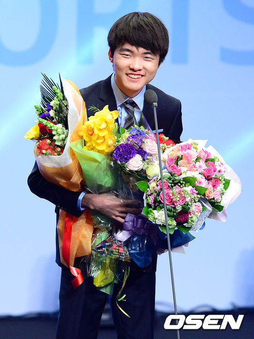 롤 미드 최우수 선수 이상혁,'웃음꽃 활짝'