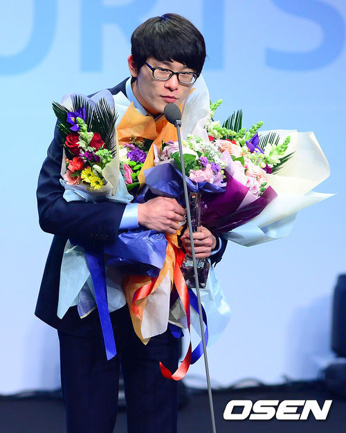 롤 AD 최우수 선수상을 차지한 채광진이 수상소감을 전하고 있다.