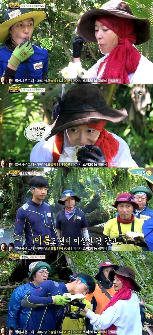 병만족은 7일 오후 방송된 SBS 예능프로그램 '정글의 법칙 in 미크로네시아'에서 예지원, 임시완이 구해온 사워솝을 맛보고 감탄을 금치 못했다.