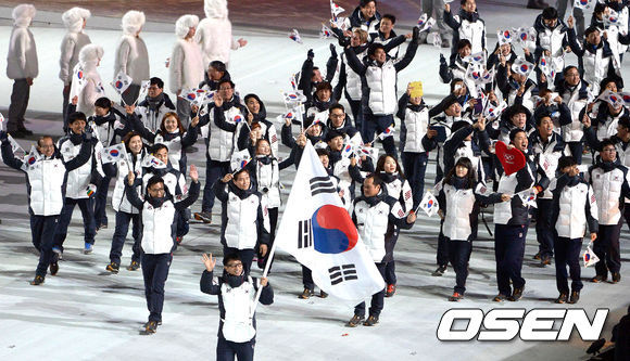 토마스 바흐 국제올림픽위원회(IOC) 위원장의 소개를 받은 블라디미르 푸틴 러시아 대통령의 올림픽 개막 선언으로 개막식이 본격적으로 시작됐다. 지하에서 문이 열리고 그리스를 선두로 한 각국 선수단이 입장했다. 러시아 알파벳 순으로 입장한 선수단 입장에서 한국은 폴란드의 뒤를 이어 등장했다.