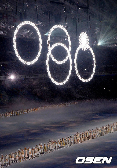 거대한 눈꽃의 형상이 하나씩 펴지며 오륜의 모습으로 바뀌어가는 과정에서 오른쪽 끝의 눈꽃이 펴지지 않으며 오륜이 아닌 사륜에 그치고 만 것. 개막식이 시작하자마자 얼마 되지 않아 벌어진 오륜기 사고에 심혈을 기울여 개막식을 준비한 러시아의 체면이 구겨진 셈이다.