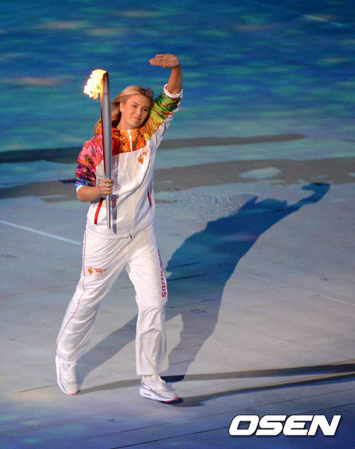 마리아 샤라포바가 성화주자로 뛰고 있다.