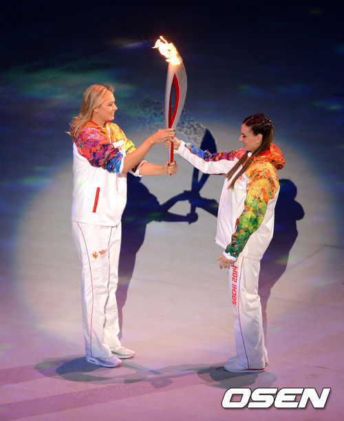러시아 대표 두 미녀 샤라포바와 이신바예바가 화제다. 8일 새벽 1시 14분부터 시작된 2014소치 동계올림픽에 성화주자로 참가했기 때문.
