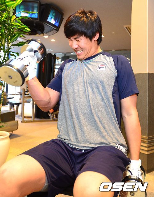 훈련을 마친 두산 이용찬이 숙소인 라그제히토츠바 호텔에서 웨이트 훈련을 진행하고 있다./dreamer@osen.co.kr