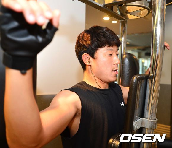 훈련을 마친 두산 오현택이 숙소인 라그제히토츠바 호텔에서 웨이트 훈련을 진행하고 있다./dreamer@osen.co.kr