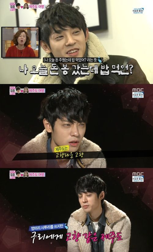 정준영은 8일 방송된 MBC 예능프로그램 '우리 결혼했어요4'에서 “나 어제 돈 봉 갔는데 같이 저녁에 밥 먹언?” 등 알아듣기 힘든 제주도 방언을 선보여 눈길을 끌었다. 이에 정유미는 “아프리카 말 같다”고 폭소했다.