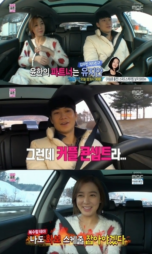 윤한은 8일 방송된 MBC 예능프로그램 '우리 결혼했어요4'에서 이소연과 겨울여행을 떠나던 중 차 안에서 "다른 여자하고 화보를 찍었다"고 털어놨다. 그는 "파트너가 김우빈이라는 분의 여자친구라더라"면서도 "그래도 커플 콘셉트로 촬영했다"고 설명했다.