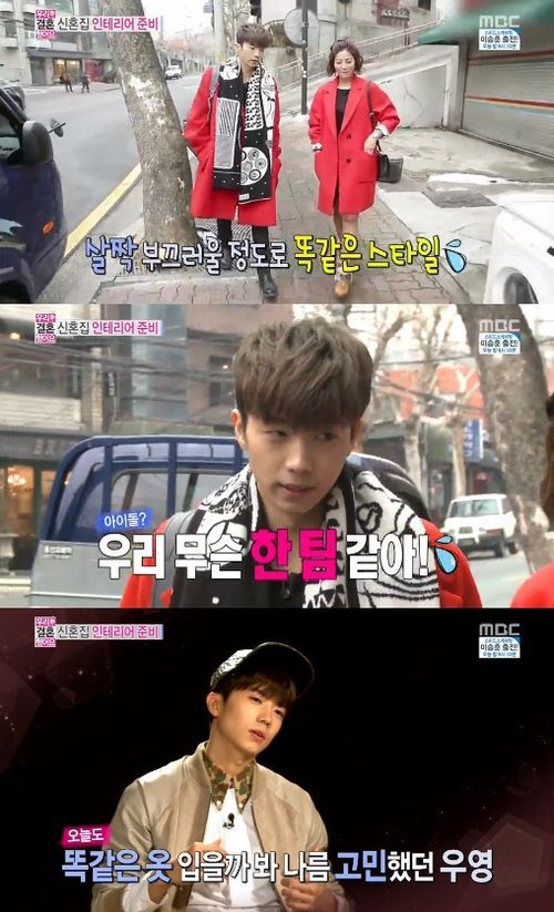 장우영과 박세영은 8일 방송된 MBC 예능프로그램 '우리 결혼했어요4'에 나란히 빨간색 코트를 입고 등장했다.