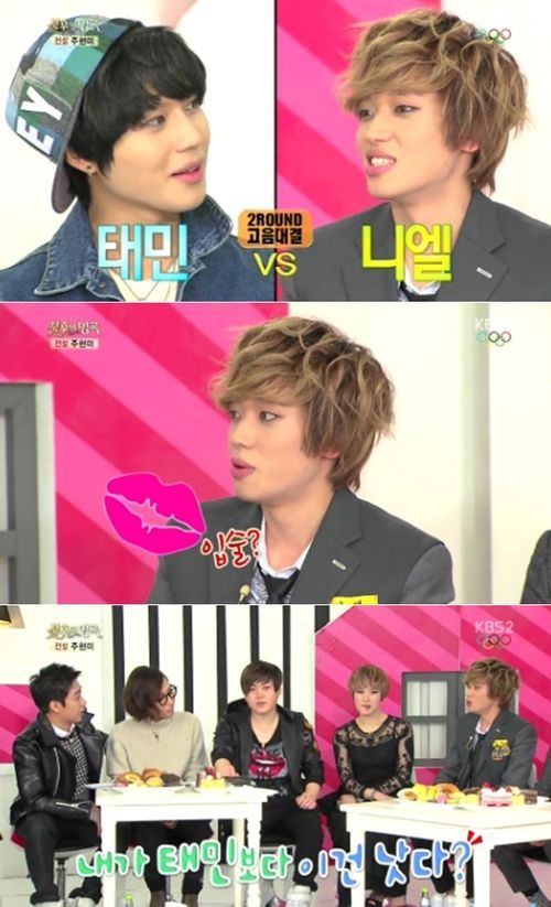 보이그룹 틴탑의 니엘이 선배 가수인 태민보다 나은 점이 있다면 '입술'이라고 밝혔다.