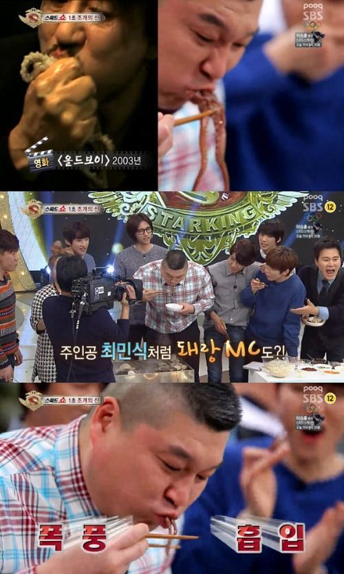 [OSEN=임승미 인턴기자] 방송인 강호동이 영화 ‘올드보이’의 최민식을 연상시키는 낙지 먹방(먹는 방송)을 선보였다.