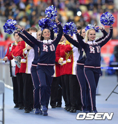 러시아 응원단이 열띤 응원을 선보이고 있다.
