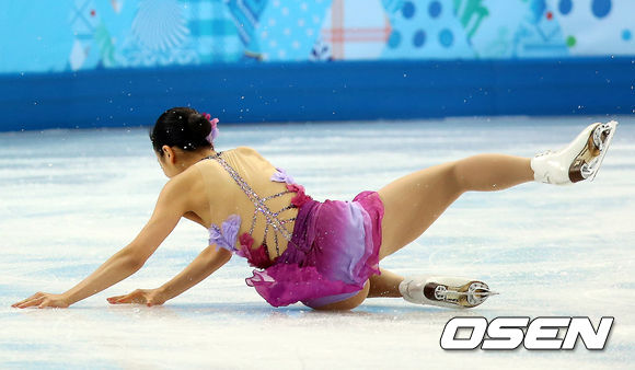아사다 마오가 첫 번째 점프 트리플 악셀에서 넘어지고 있다./ soul1014@osen.co.kr