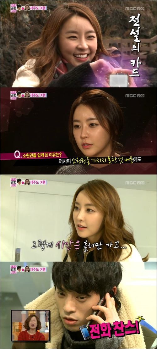 정준영은 유달리 강한 승부욕을 보였다. 때문에 소원 성취권을 획득하지 못한 것에 대해 속상할 가상 남편을 먼저 생각한 정유미의 배려였던 것. 또한 정유미는 게임 박물관에서 혼자 게임에 빠져 자신을 내팽개친 정준영에게 화도 내지 않고 묵묵히 기다렸다.