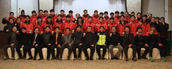 대전시티즌 염홍철 구단주(대전광역시장)와 구단 이사진, 후원자들이 부산 기장 전지훈련지를 방문해 선수단을 격려하고 변함없는 지지를 천명했다.