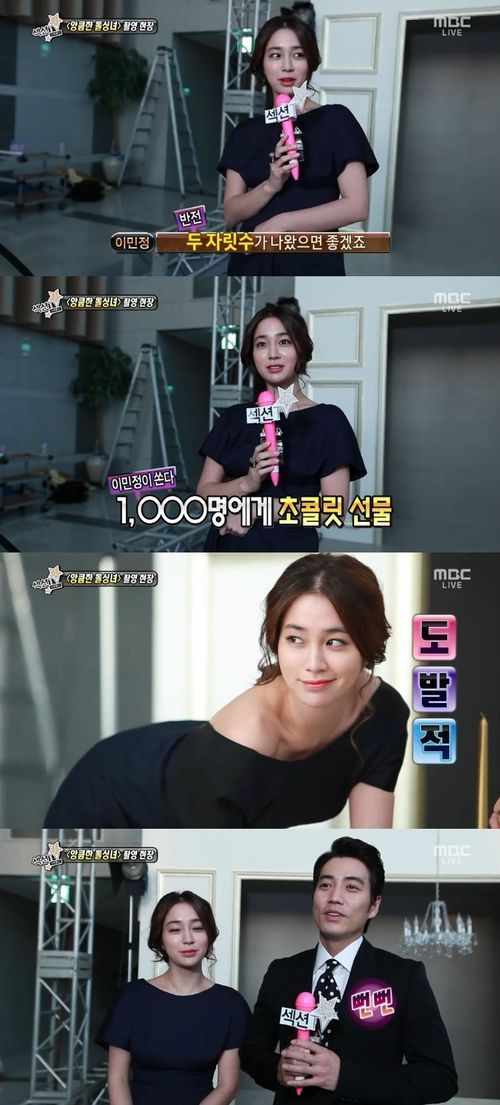 이민정은 9일 방송된 MBC ‘섹션TV연예통신’과의 인터뷰에서 ‘앙큼한 돌싱녀’ 방송이 시청률 25%를 넘으면 이 같은 공약을 실천하겠다고 설명했다.