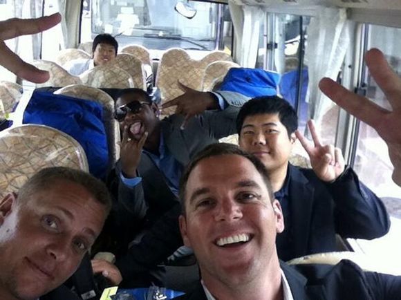 외국인 투수 릭 밴덴헐크는 8일 자신의 트위터를 통해 '드디어 오키나와에 도착해서 모두들 기뻐하는 모습'이라는 글과 함께 사진을 게재했다. 사진 속의 나바로는 짙은 회색 정장 차림에 선글래스까지 착용하며 세련된 멋을 뽐냈다.