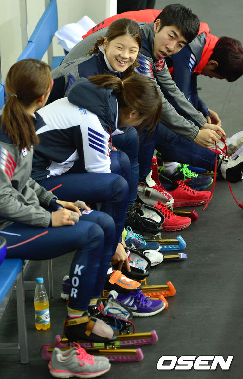 9일(한국시간) 대한민국 쇼트트랙 대표팀이 러시아 소치 스케이팅 트레이닝 센터에서 훈련을 하고 있다.