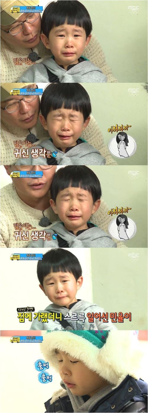 앞서 김민율은 갑자기 문이 열리는 집을 보며 귀신이 나올 수 있다는 공포감에 시달렸다. 이 아이는 “무서워”라고 눈물을 쏟았다.
