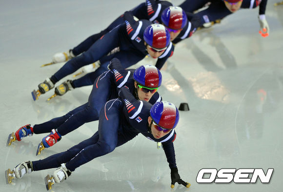 9일(한국시간) 대한민국 쇼트트랙 대표팀이 러시아 소치 스케이팅 트레이닝 센터에서 훈련을 하고 있다.