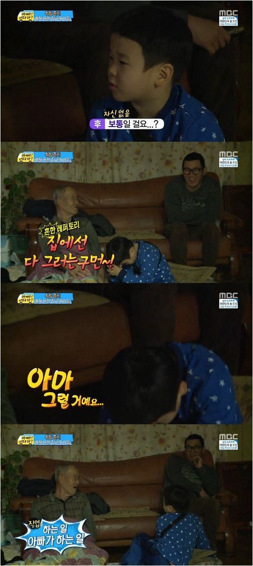 윤후는 9일 방송된 MBC 예능프로그램 ‘일밤-아빠 어디가’에서 한 할아버지가 “공부는 잘 하냐?”라고 묻자 “보통이요”라고 기어들어갈 듯한 작은 목소리로 대답을 했다.