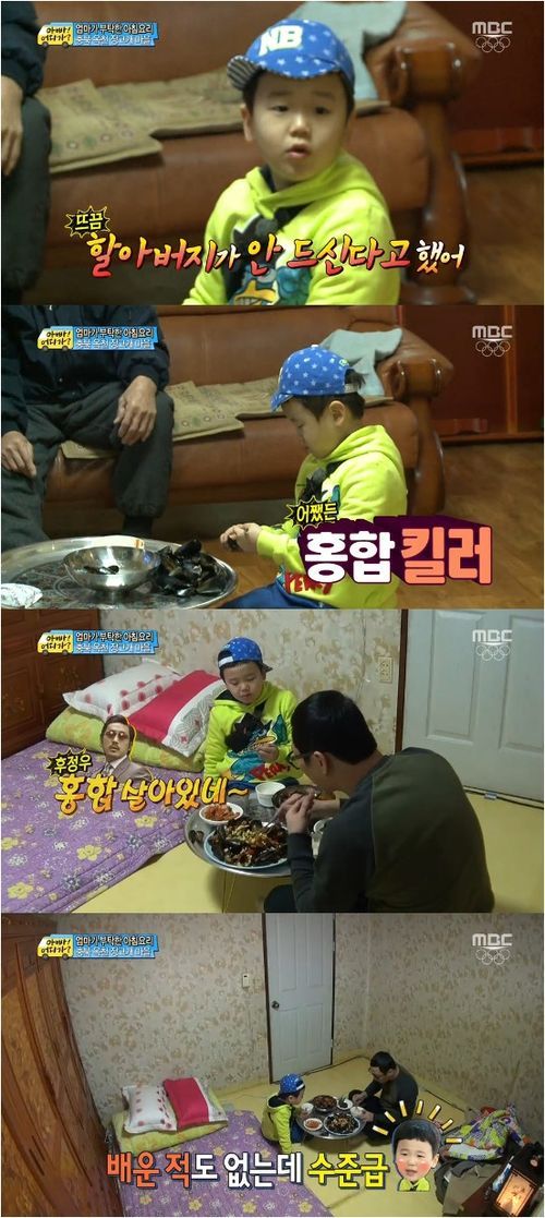 앞서 윤민수는 윤후에 대해 “아이가 머리는 좋은데 노력을 안해서 공부를 못한다”고 말한 바 있다. 이날 윤후는 아빠가 만든 홍합탕과 홍합찜, 홍합찌개 등을 폭풍흡입했다.