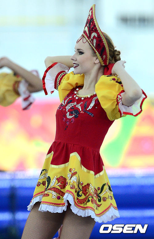 정빙시간에 러시아 치어리더가 멋진 공연을 선보이고 있다.