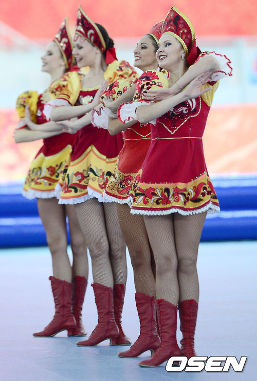 정빙시간에 러시아 치어리더가 멋진 공연을 선보이고 있다.