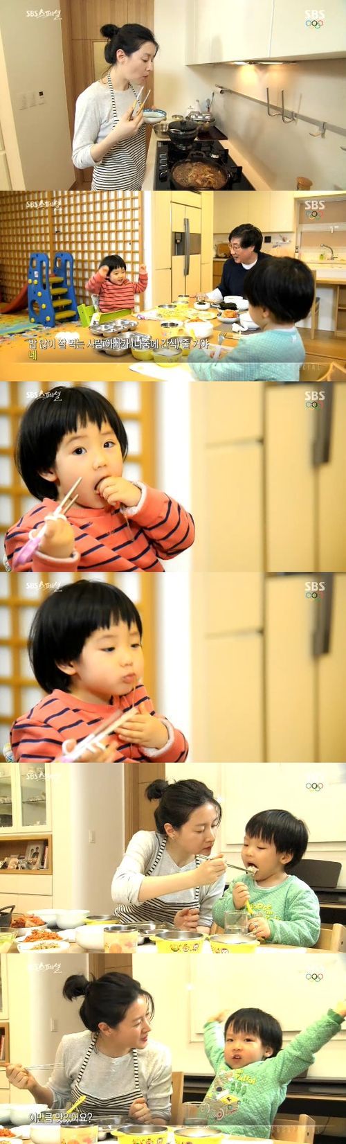 이때 이영애의 남편 정호영씨가 쌍둥이 남매에게 “아빠가 밥 많이 먹는 사람에게 간식 주겠다”라고 하자, 아이들은 앞다퉈 불고기 먹방을 선보였다. 특히 딸 승빈 양은 “엄마 이거 더 줘요”라고 말하며 맛깔나는 먹방을 선보였고, 아들 승권 군은 “아주 많이 맛있다”라며 깜찍한 애교를 부려 엄마 이영애를 흐뭇하게 만들었다.