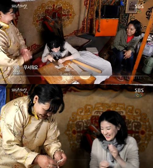 이날 몽골을 방문한 이영애는 몽골식 물국수 고릴테슐을 만드는 모습에 “이렇게 하는 건 우리나라 칼국수와 비슷하다”라며 높은 관심을 보였다.