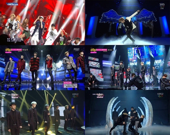 지난 3일, 첫 번째 정규앨범 '퍼스트 센서빌리티(First Sensibility)'를 발표한 B.A.P가 KBS 2TV '뮤직뱅크'를 시작으로, MBC '쇼!음악중심', SBS '인기가요' 등을 통해 화려한 컴백무대를 꾸몄다. 특히 B.A.P는 타이틀곡 '1004(Angel)' 무대와 함께 방송사마다 각기 다른 수록곡의 무대를 함께 꾸미며 다양한 매력을 드러냈다.