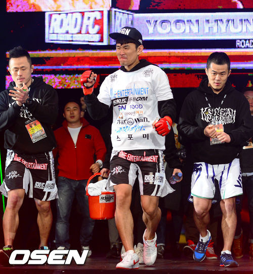 개그맨 윤형빈은 9일 오후 8시 서울 송파구 방이동 올림픽공원 올림픽홀에서 치른 '로드 FC 014'에서 일본의 타카야 츠쿠다를 1라운드 4분 11초 만에 TKO로 때려눕혔다. 초반에 고전을 면치 못했던 윤형빈은 1라운드 막판 타카야의 안면에 라이트 훅을 정확하게 작렬해 TKO 승리를 확정지었다.